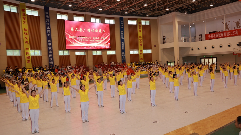 隨后,由銅川礦業(yè)公司精心準備的職工全民健身展示活動拉開序幕,展示共分為太極拳、健身操、舞龍、軍體拳、柔力球、戰(zhàn)鼓、第九套廣播體操七個節(jié)目。展演中,參演人員個個精神抖擻,踩著律動的節(jié)拍,以精彩的表演生動展示了公司在開展全民健身活動的成果和頑強拼搏、踔厲奮發(fā)的堅定信心與豪邁激情。