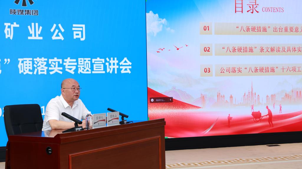 為認(rèn)真貫徹落實(shí)國(guó)家礦山安全監(jiān)察局關(guān)于“八條硬措施”硬落實(shí)相關(guān)要求,深刻把握“八條硬措施”精神實(shí)質(zhì)和科學(xué)內(nèi)涵,9月10日,公司在信息調(diào)度中心五樓會(huì)議室舉辦“八條硬措施”硬落實(shí)主題宣講會(huì)。公司黨委書記、董事長(zhǎng)路根奎主持會(huì)議,公司黨委副書記、董事、總經(jīng)理雷鐵山作了宣講。