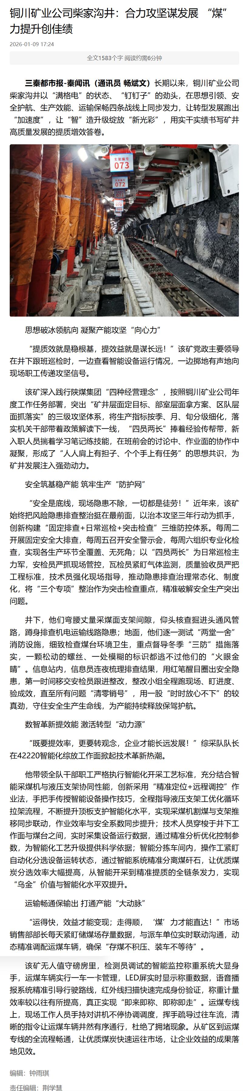 三秦網(wǎng)| 柴家溝井:合力攻堅(jiān)謀發(fā)展 “煤”力提升創(chuàng)佳績(jī)