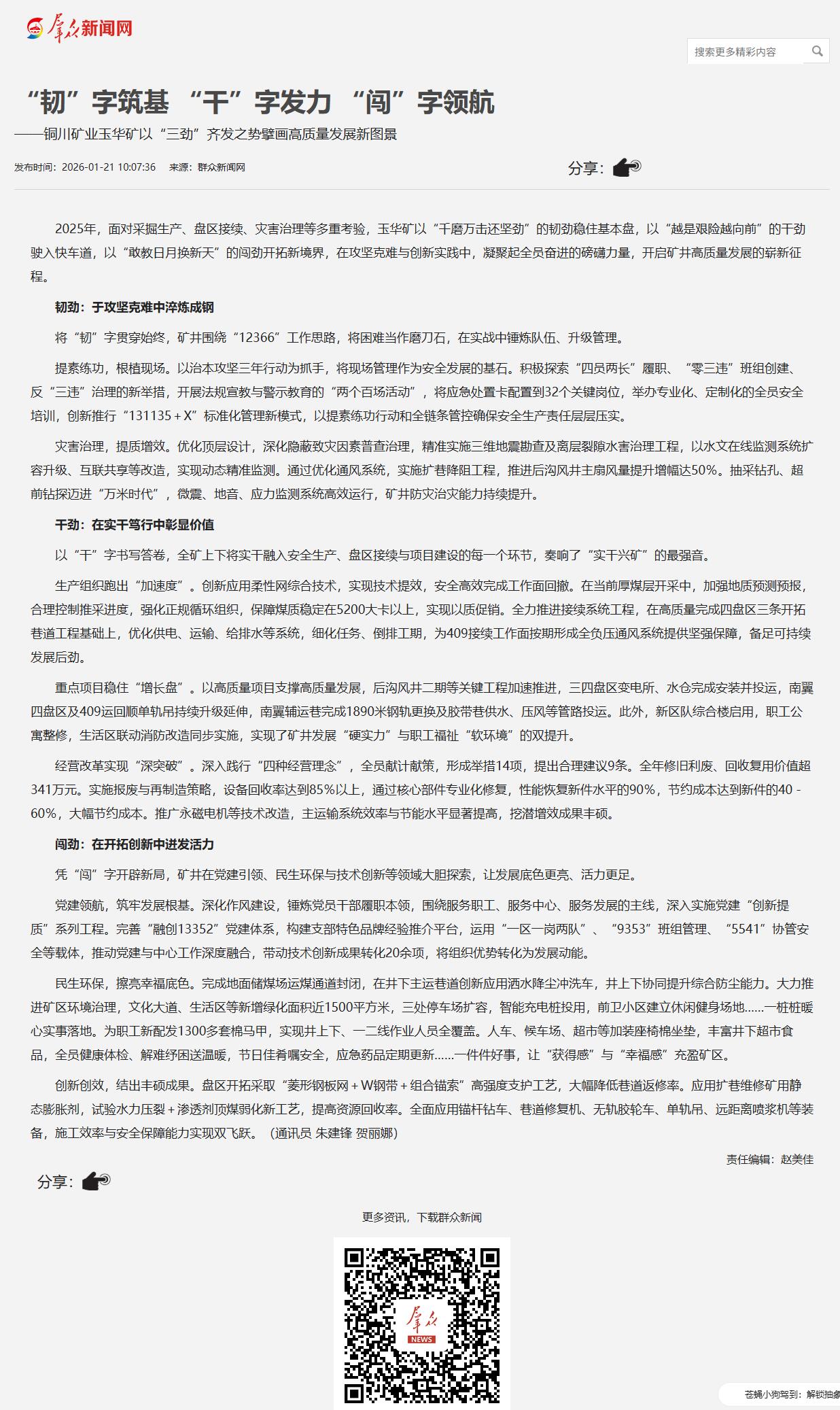 上一條:群眾新聞網(wǎng)| 玉華礦:新年出“掘”招 賦能盤區(qū)接續(xù)工作 下一條:中華網(wǎng)| 陳家山煤礦:勇立潮頭敢為先 再踏層峰譜新篇
