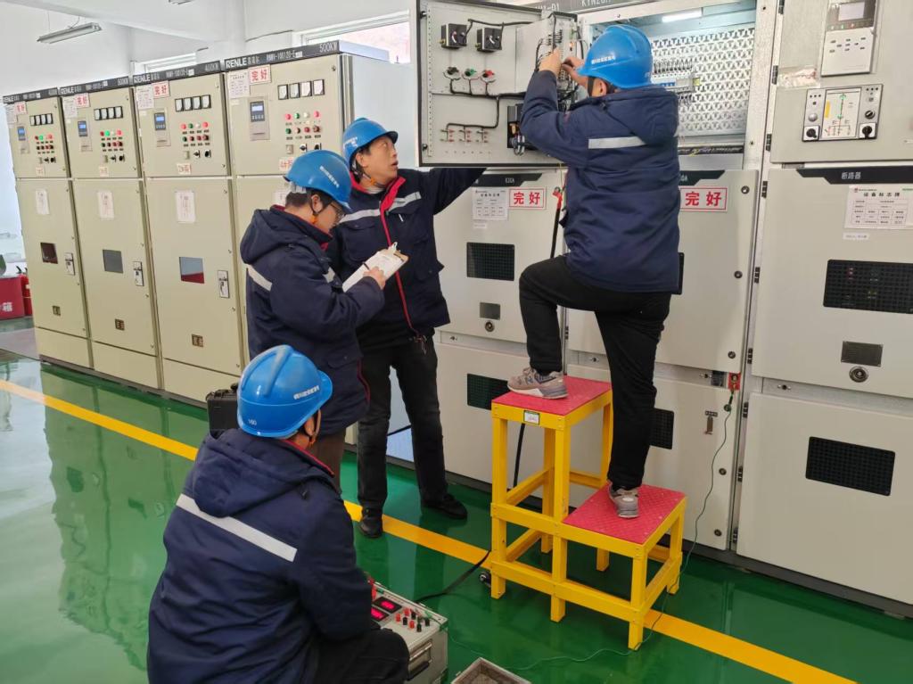陽春三月,春風和煦。在欣榮公司電氣試驗檢修現(xiàn)場,一派忙碌的景象,該公司2025年春季預防性試驗和檢修工作正在井然有序的進行,幾個身穿工作服、頭戴安全帽的工作人員正在忙碌著,試驗高壓開關柜綜合保護器保護動作情況、開關柜二次室和真空斷路器的檢查清理工作。