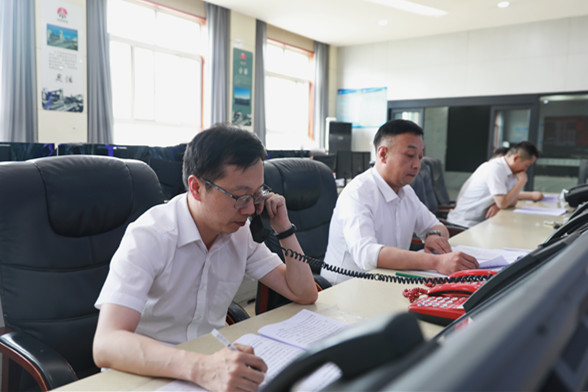 走進(jìn)調(diào)度指揮中心,這里和往常一樣忙碌。調(diào)度員目光聚焦于監(jiān)控屏幕,密切關(guān)注監(jiān)測監(jiān)控系統(tǒng)設(shè)備運(yùn)行情況。礦井汛期“三防”小組召集成員,在圖紙前分析制定節(jié)日期間巡查路線和排查任務(wù)清單,布置應(yīng)急值班值守崗位督導(dǎo)檢查行動(dòng)。連日來,礦區(qū)迎來降雨天氣,做好設(shè)備防雷電裝置檢測,加強(qiáng)重點(diǎn)區(qū)域、關(guān)鍵部位監(jiān)測和防汛物資管理、應(yīng)急隊(duì)伍訓(xùn)練,各項(xiàng)工作和預(yù)案措施落實(shí)到位。