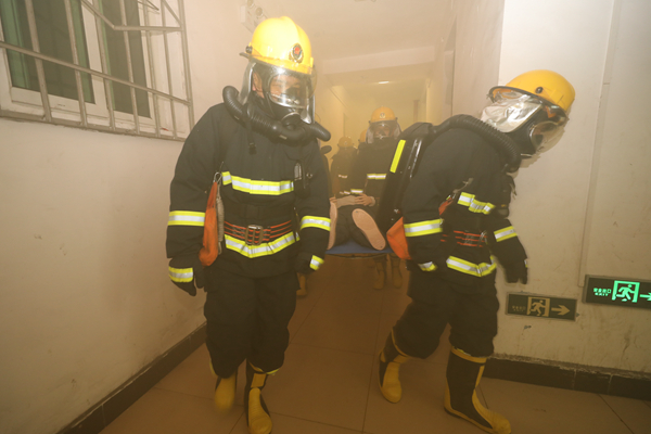 隨著橙色煙霧升起,模擬火場逃生演練正式啟動。參演人員嚴格遵循預定疏散路線,用濕毛巾捂住口鼻,低姿、快速、有序地從單身樓撤離。演練還設置了“傷員救援”情景,專業(yè)人員現(xiàn)場演示了擔架轉運與基礎急救流程,進一步增強了大家在突發(fā)事件中的協(xié)作與救助能力。整個演練過程組織有序、貼近實戰(zhàn),既是一堂生動的安全教育課,也是落實安全生產(chǎn)責任的生動實踐。