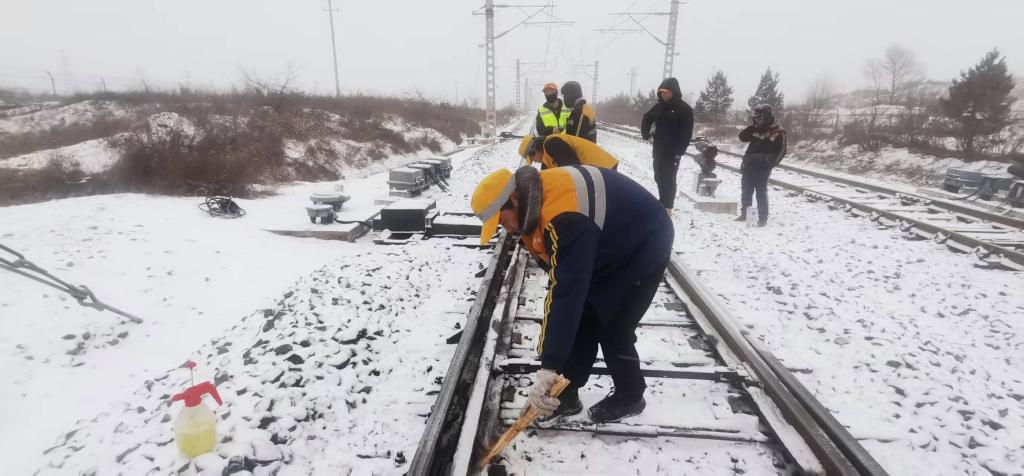 聞令即動,迅速集結(jié)筑防線。該分公司第一時間啟動應(yīng)急響應(yīng),迅速組建清雪隊伍:市區(qū)各站段和駐外項目部立即啟動冬季除雪保暢應(yīng)急預(yù)案,全員投入清雪戰(zhàn)斗;機車維修中心黨員干部兵分多路深入現(xiàn)場,主動沖向清雪一線;工電段、北區(qū)綜合段和榆橫項目部以班組為基礎(chǔ),第一時間組織線路工開展鐵路線路巡查工作。各級管理人員率先到崗,當班人員紛紛加入,在銀裝素裹的站場、線路上掀起清雪熱潮,用最快速度響應(yīng)惡劣天氣挑戰(zhàn)。