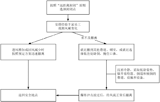 圖2 煤礦火災(zāi)期間發(fā)生瓦斯爆炸避災(zāi)措施程序簡圖