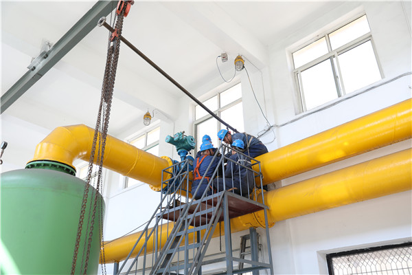 4月30日11時(shí)許,南風(fēng)井瓦斯抽放泵房,室內(nèi)溫度30℃。汗水順著安全帽帶落在管道上“滴答”作響?!袄规湥偬Ц?mm就對(duì)上了”,一陣急促的呼喊,班長(zhǎng)崔雙豐指揮著工友加緊更換DN500閥門。