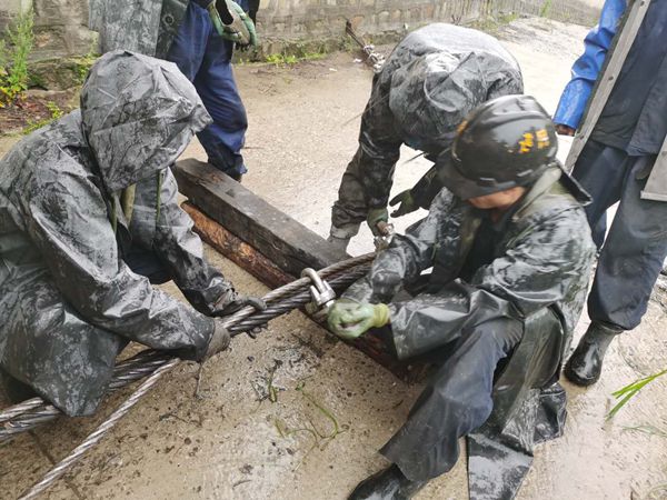 8月6日陰雨連綿不斷,換繩工作按計劃準(zhǔn)時開工。零點班大皮帶一停運,工作面抓緊拉空原煤后,換繩“戰(zhàn)役”在多家單位協(xié)同配合下全面打響。換繩期間,運轉(zhuǎn)隊廣大干部職工首當(dāng)其沖,防沖隊、綜掘五隊等單位密切配合,分管領(lǐng)導(dǎo)現(xiàn)場跟班管理,機電管理部、安監(jiān)部、調(diào)度室安排專人檢查協(xié)調(diào)檢修進度和質(zhì)量,參與換繩的廣大干群齊心協(xié)力迎難而上,頂風(fēng)冒雨緊張作業(yè),嚴(yán)把工時利用,細化每一道工序,在雨地里插接鋼絲繩繩頭,用舊繩將新繩帶入井下,將繩頭分別插接到兩個井筒和皮帶機房,夜里雨越下越大,參與施工的單位積極克服黑夜暴雨、人員緊張、施工受限等不利因素,緊密配合、合力攻堅,認(rèn)真插接固定,有條不紊的推進工作進度,經(jīng)過60多人二十多個小時的緊張鏖戰(zhàn),共更換鋼絲繩2700米,在確保安全的前提下圓滿完成了換繩檢修任務(wù),為礦井運輸安全奠定了堅實基礎(chǔ)。