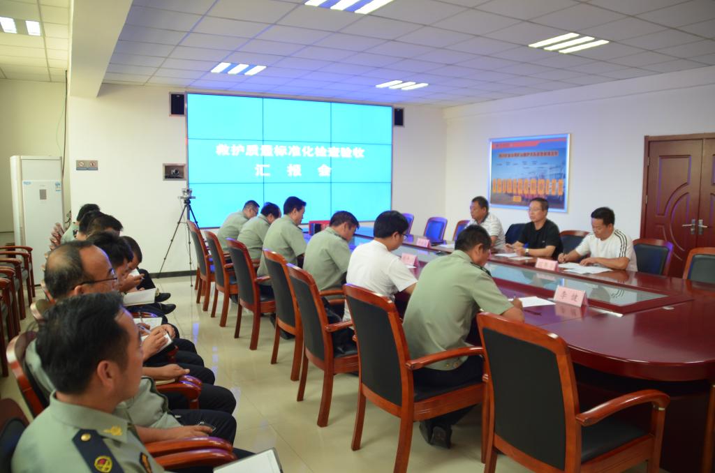 檢查組一行到隊(duì)后,在大隊(duì)機(jī)關(guān)三樓調(diào)度會(huì)議室召開了匯報(bào)會(huì)。聽取了大隊(duì)圍繞基本情況、質(zhì)量標(biāo)準(zhǔn)化建設(shè)、標(biāo)準(zhǔn)化自查問題整改情況以及存在問題分析等方面的工作匯報(bào)。就開展救護(hù)質(zhì)量標(biāo)準(zhǔn)化達(dá)標(biāo)驗(yàn)收的目的進(jìn)行了說明。