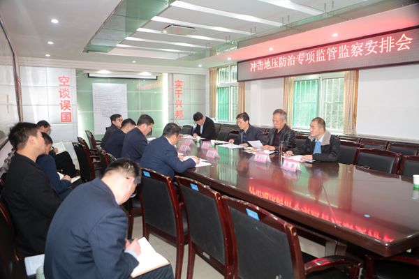 高雙鎖一行到礦后,與該礦領(lǐng)導(dǎo)在機(jī)關(guān)二樓會議室召開了檢查工作安排會,監(jiān)察組人員對此次監(jiān)察的目的、意義和檢查重點(diǎn)進(jìn)行了說明。對照礦井采掘工程平面圖,聽取了該礦礦井的基本情況,對礦井自然災(zāi)害種類、沖擊地壓設(shè)備投入、人員組織機(jī)構(gòu)、鉆孔施工臺賬、監(jiān)測日報(bào)表等方面工作進(jìn)行了深入的溝通交流,提出了專業(yè)化的指導(dǎo)意見和建議。