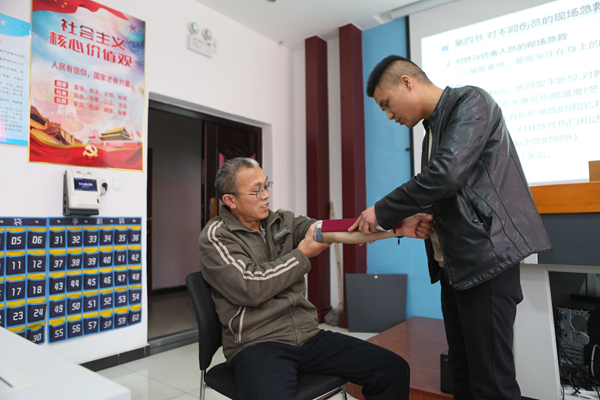 在授課過程中,專業(yè)醫(yī)務人員采用創(chuàng)傷急救理論知識講解與現(xiàn)場職工互動示范的方式,詳細講解了井下創(chuàng)傷急救、自救、互救、生命體征的認識、昏迷窒息人員進行心肺復蘇注意事項,受傷人員止血、骨折包扎、固定、搬運方式和操作方法,及時糾正職工的操作誤區(qū)和知識盲點,使每名涉井人員都能熟練掌握正確的創(chuàng)傷急救方法,有效避免在創(chuàng)傷急救中受到二次傷害,為職工生命健康安全再添新保障。