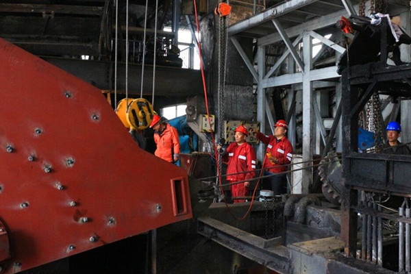 受場(chǎng)地空間限制,拆除的舊件需要運(yùn)出廠房后,再進(jìn)行新部件的安裝更換。設(shè)備進(jìn)出施工作業(yè)區(qū)困難,安裝精度要求高,立輪無(wú)法進(jìn)入排矸車(chē)間作業(yè)區(qū),礦分管領(lǐng)導(dǎo)及相關(guān)部門(mén)專業(yè)技術(shù)人員與施工方積極對(duì)接,研究探討、相互配合,提前打通排矸車(chē)間側(cè)墻,清除障礙物,改進(jìn)吊裝方案,作業(yè)現(xiàn)場(chǎng)調(diào)整傾斜角度,在雙方的共同努力下,這個(gè)龐然大物順利運(yùn)輸至安裝位置,大大提高了施工效率。 該項(xiàng)目的順利施工直接影響到礦井的經(jīng)濟(jì)效益,為按期保質(zhì)完成施工任務(wù),該礦各級(jí)管理部門(mén)負(fù)責(zé)人堅(jiān)持24小時(shí)跟班到作業(yè)現(xiàn)場(chǎng),全程陪護(hù)式對(duì)安全進(jìn)行監(jiān)管,并提出技術(shù)性指導(dǎo)。