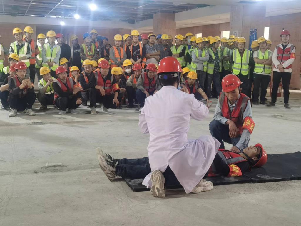 活動(dòng)現(xiàn)場(chǎng),該公司特邀鳳城醫(yī)院骨科專家針對(duì)高空墜落傷、呼吸心跳停止、氣道異物梗阻等急救方面知識(shí)進(jìn)行了詳細(xì)的講解。對(duì)如何判斷意識(shí)和生命體征、清理口腔分泌物、開(kāi)放氣道、胸外按壓等一系列心肺復(fù)蘇動(dòng)作操作要領(lǐng)進(jìn)行演示,并對(duì)按壓的正確方法、部位、姿勢(shì)、按壓深度等一些難以掌握的動(dòng)作難點(diǎn)反復(fù)教學(xué)。同時(shí)針對(duì)身體各部位摔傷骨折的固定、包扎、搬運(yùn)等動(dòng)作進(jìn)行耐心指導(dǎo)。現(xiàn)場(chǎng)全體施工人員認(rèn)真聆聽(tīng),踴躍參與嘗試,專家熱心解惑,學(xué)習(xí)熱情空前高漲。