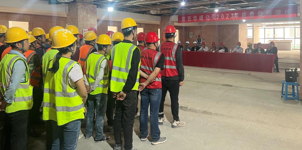 為進(jìn)一步提升公司事故災(zāi)難應(yīng)對(duì)能力,科學(xué)有效組織應(yīng)急救援處置工作。4月20日下午,華峰公司在西安航天城陜西煤基特種燃料研究院辦公樓裝飾裝修項(xiàng)目施工現(xiàn)場(chǎng)組織開(kāi)展安全應(yīng)急救援演練。甲方代表、監(jiān)理代表、華峰公司領(lǐng)導(dǎo)、相關(guān)部室、項(xiàng)目管理人員和施工人員共計(jì)100余人參與本次演練。