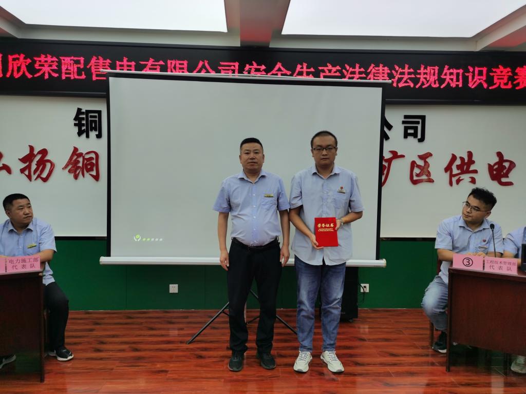 此次競賽包括必答題、搶答題和風(fēng)險題三個環(huán)節(jié),緊扣安全生產(chǎn)法律法規(guī)、電力行業(yè)安全生產(chǎn)基礎(chǔ)知識等內(nèi)容。最終,經(jīng)過激烈角逐,所屬電力調(diào)度中心代表隊取得冠軍,市場營銷部取得二等獎、電力施工部代表隊獲得三等獎。同時,來自電力施工部的胥哲東同志取得了“最佳個人”獎。在熱烈的掌聲中,銅川礦區(qū)工會和公司領(lǐng)導(dǎo)分別向現(xiàn)場獲獎代表隊頒發(fā)了證書,以資鼓勵。