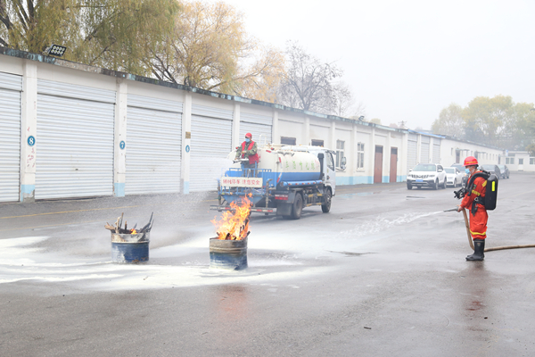 演練中,隨著哨聲響起,總指揮下達演練開始指令,各組人員迅速到位,組織人員撤離,滅火行動小組攜帶滅火器、消防水槍對火災現(xiàn)場進行滅火,按照滅火器“提、拔、握、壓”的操作要領,實際體驗學習了滅火器正確使用方法,整個演練過程井然有序,成效顯著,進一步引導了職工關注消防、學習消防、參與消防,同時使職工在學習消防知識、實地演練滅火過程中,增強了緊急情況下的應變能力、自我防護能力和遇到突發(fā)火災事件的現(xiàn)場處置能力。