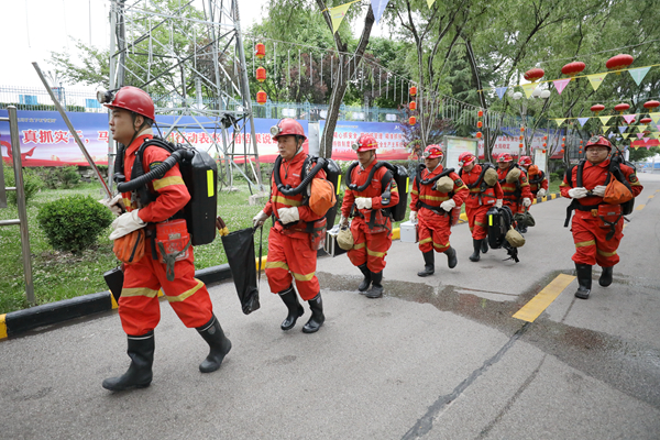 “224工作面涌水異常,緊急啟動(dòng)水災(zāi)事故搶險(xiǎn)應(yīng)急預(yù)案,請(qǐng)救護(hù)隊(duì)員迅速進(jìn)入工作面完成搜救工作?!痹摰V在開展水災(zāi)應(yīng)急救援演練過程中,模擬224工作面前落山底板出現(xiàn)涌水場景。救護(hù)中隊(duì)接到指揮部指令后快速反應(yīng)、立即出動(dòng),留下了一道道應(yīng)急搶險(xiǎn)最美“逆行者”的身影。