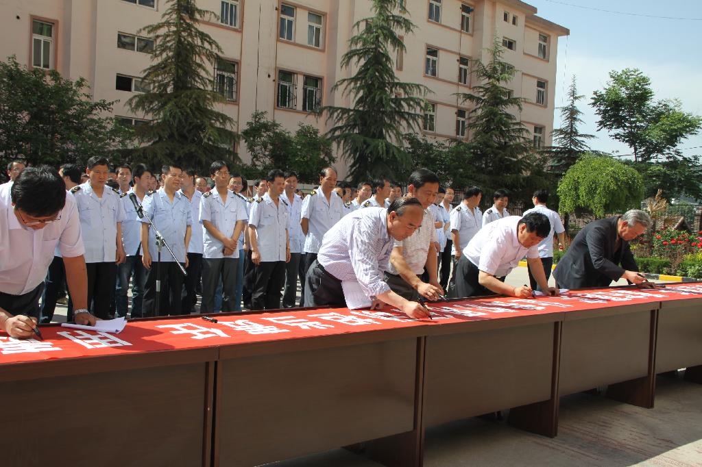 最后,公司黨政領(lǐng)導(dǎo)與干部職工、女工家屬協(xié)管員一起在寫有“用行動(dòng)擔(dān)當(dāng)責(zé)任,用責(zé)任呵護(hù)生命”的條幅簽上了自己的名字,鄭重與安全簽約。