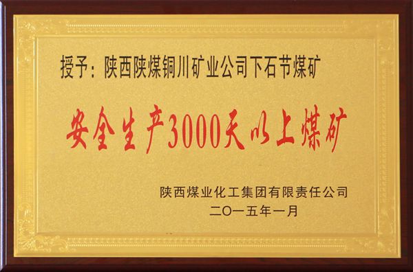 近日,從陜煤化集團(tuán)2015年安全工作會(huì)上傳來喜訊,下石節(jié)礦被陜煤化集團(tuán)授予“安全生產(chǎn)3000天以上礦井”稱號。