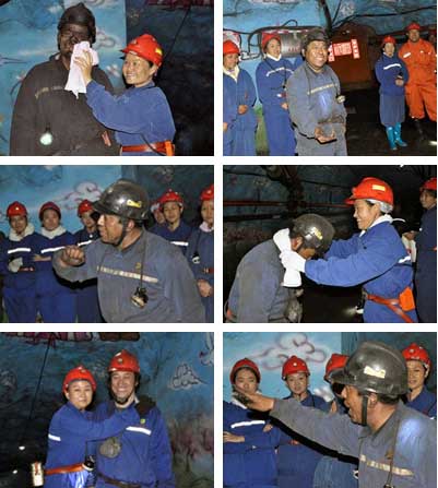 此次活動由礦安質(zhì)科、宣傳部、工會精細(xì)策劃組織,通過安全培訓(xùn)、才藝訓(xùn)練、逐輪淘汰等方式,選拔出素質(zhì)高、能力強(qiáng)、講安全的15名安檢員妻子,以“安監(jiān)之聲”為題,排練出貼切安全、貼合礦工、貼近井巷的12個節(jié)目,以歌曲、朗誦、送安全囑語等形式,在井下八點班與四點班交接班必經(jīng)的624平臺上,傾情送給回安隊、掘一隊等5個采掘區(qū)隊300多名礦工,在千尺井巷上演了一場安全盛宴。當(dāng)天下午13時,15名礦嫂乘坐“猴車”與“人車”來到井下。在《老公老公你辛苦了》、《老公老公我愛你》歌曲中拉開序幕。礦嫂們激情朗誦,現(xiàn)場高歌,主動邀請礦工一起對唱對演。當(dāng)綜采二隊職工高建斌與礦嫂楊雪梅合唱的一曲《為了誰》響徹井巷時,有節(jié)奏的拍手聲、興高采烈的歡呼聲、快意舒暢的喝彩聲連成一片,煤海深處成為一片愛的海洋。最后,礦嫂、礦工共同高歌《祝你平安》,礦嫂把一條條毛巾戴在礦工脖子上,礦工們齊聲呼喊:“謝謝我們的“安監(jiān)明星團(tuán)”!謝謝我們的礦嫂!”15名安監(jiān)員家屬真誠地回應(yīng):“今天,才知道老公工作的不容易!才知道礦工更不容易!更辛苦!能為老公和你們的安全做點事,是我們的福氣!我們都得謝謝你們!全礦都得謝謝你們!”