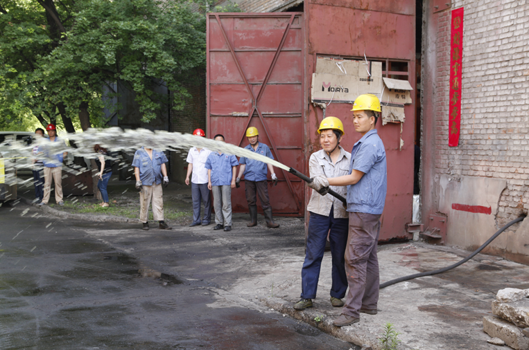 排水演練以連日降雨造成位于廠區(qū)低洼地帶的大修分廠廠房出現(xiàn)不同程度進水,并且水位持續(xù)上漲,危及車間正常生產,亟需及時排水以緩解或解除持續(xù)上升水位為假想展開。值班人員發(fā)現(xiàn)險情后,立即將受災地點、受災范圍、設備設施的完好程度、是否有人員遇險等內容,向防汛搶險應急領導小組組長報告。組長確認現(xiàn)場險情后,隨即下達防汛搶險應急預案啟動指令,火速集結救援人員,奔赴災害現(xiàn)場。搶險人員到達現(xiàn)場,經清點物資及確認到場人員后,現(xiàn)場領導當即組織救援人員根據(jù)水災實時情況,迅速拉出警戒線,以作業(yè)區(qū)為單位合理分布救援區(qū)域,救援隊員們協(xié)同配合對存在重點險情部位的作業(yè)區(qū)入水口,用沙袋加固(編織袋填裝沙土)進行封堵,確保生產場地及設備安全。同時在廠房接設臨時電源,架設潛水泵,進行管路連接,抽出廠房地溝的積水。