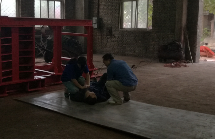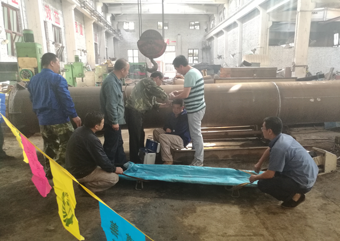 吊裝事故應急演練,假設安裝公司職工在起吊物料過程中,因疏忽大意造成頭部碰傷,血流不止,意識不清。事故出現(xiàn)后,安全員當即拉出警戒線保護事故現(xiàn)場,撥打“120”急救電話,并著手安排職工對傷員進行緊急包扎施救,同時立即將現(xiàn)場情況報告給單位領導,領導得知情況后火速趕到事故現(xiàn)場布置搶救工作,觀察傷員傷情做出初判,等待“120”急救車趕到后組織人員把傷員抬上救護車送往醫(yī)院救治。