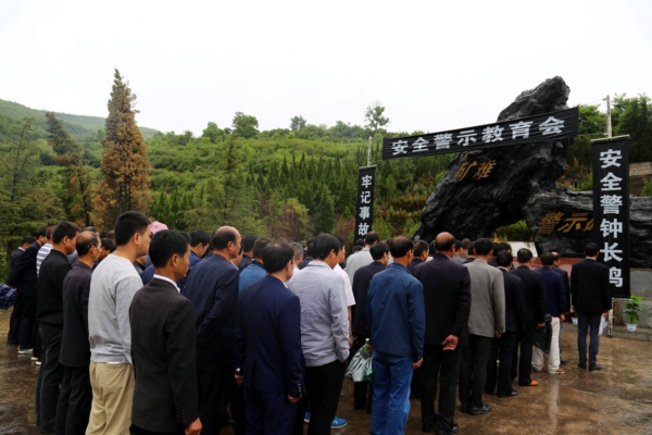 在警示教育現(xiàn)場,伴隨著綿綿細雨,接受教育的全體人員表情凝重,默然肅立,表達了對遇難礦工深切的哀思,大家緊握右拳進行了莊嚴(yán)宣誓。并環(huán)繞紀(jì)念碑一周進行祭奠。