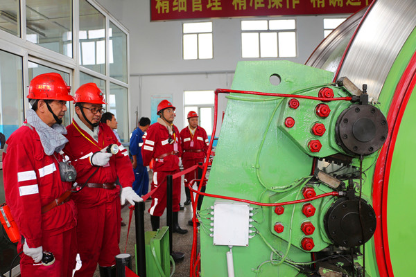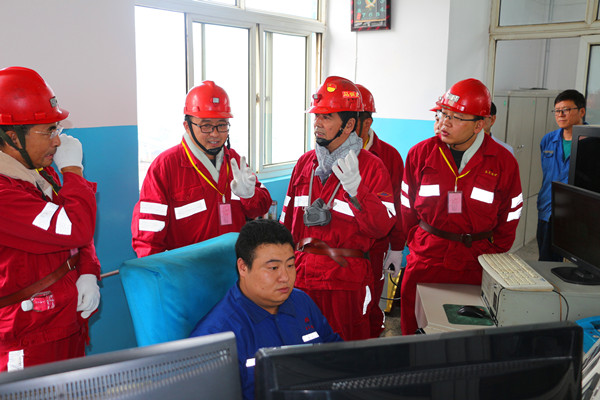 陳平定等領導到礦后,與該礦黨政領導以及相關科室負責人在礦調度會議室召開檢查匯報會。會上,檢查組組長陳平定就此次檢查目的作了說明,聽取該礦圍繞礦井提升運輸系統(tǒng)基本情況的匯報,并比對圖紙就礦井提升運輸各項管理制度、崗位責任制、操作規(guī)程、立井提升系統(tǒng)、斜井運輸系統(tǒng)等方面的具體工作細節(jié)進行了溝通探討。隨后,檢查組深入礦副立井提升機房、井下膠帶運輸大巷、2403工作面、后溝風井等地,對礦井提升運輸系統(tǒng)、一通三防相關情況進行了無盲區(qū)、全覆蓋的詳細檢查。下午檢查組走進各相關科室,對礦井安全基礎管理、提升運輸?shù)确矫娴南嚓P資料臺賬進行了詳細檢查,同時對礦井安全管理人員,提升運輸、一通三防、井下電氣作業(yè)等崗位人員進行了現(xiàn)場閉卷考試。