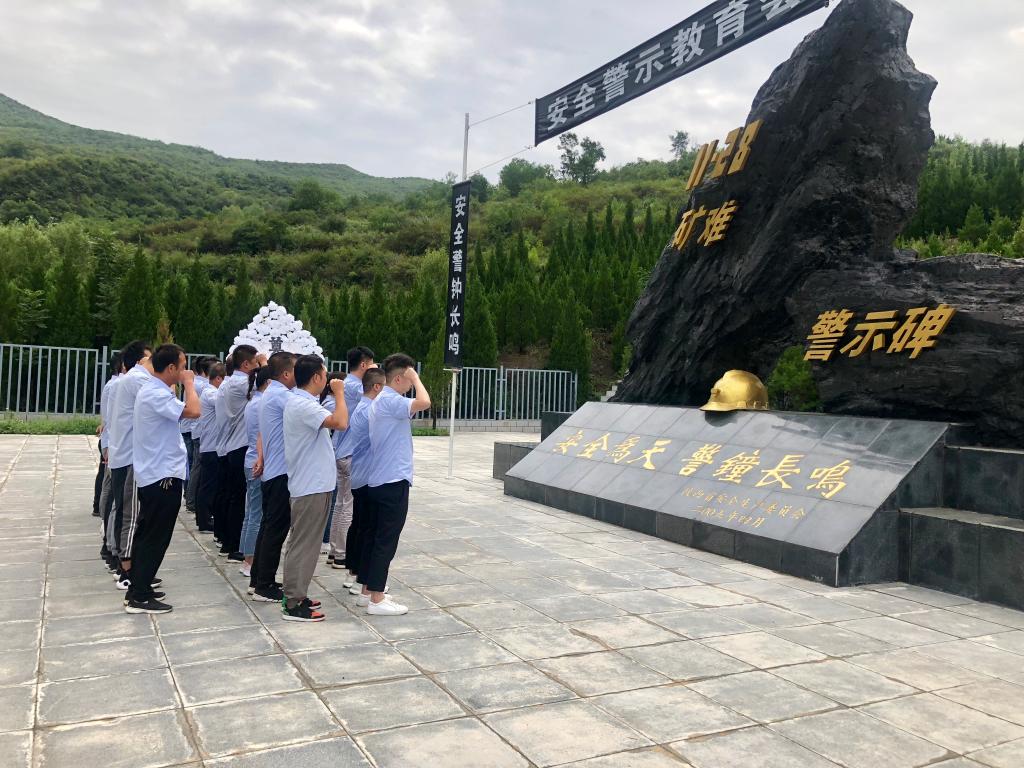 全體人員來到礦難警示碑前,向遇難礦工敬獻花圈,全體人員默然肅立,懷著沉重的心情面向警示紀念碑默哀,表達對遇難礦工深切的哀思,并在警示碑前進行了莊嚴的安全宣誓。隨后,全體人員繞紀念碑一周,緬懷紀念遇難礦工,汲取安全事故教訓。