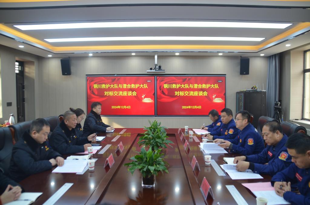 在對標(biāo)交流座談會上,雙方就隊(duì)伍組織機(jī)構(gòu)、人員配置、隊(duì)伍建設(shè)、戰(zhàn)備執(zhí)勤、應(yīng)急演練、技能訓(xùn)練、標(biāo)準(zhǔn)化建設(shè)、技術(shù)裝備管理、黨建工作融入等工作進(jìn)行了深入交流探討,并觀看了澄合礦業(yè)救護(hù)大隊(duì)視頻宣傳片。隨后,一行人實(shí)地參觀了該大隊(duì)綜合樓、應(yīng)急指揮調(diào)度中心、全員考試機(jī)房、應(yīng)急救援實(shí)訓(xùn)基地、儀器儀表維修室等地,部門對接查看了各項(xiàng)相關(guān)資料,積極對標(biāo)先進(jìn)管理經(jīng)驗(yàn),虛心學(xué)習(xí)和借鑒好的經(jīng)驗(yàn)與做法。