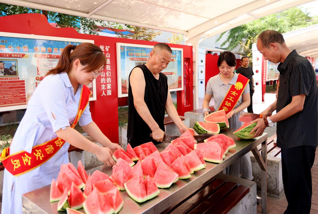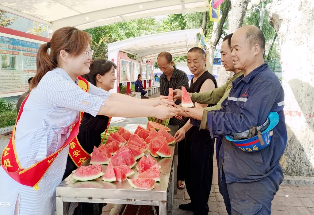 活動現(xiàn)場,該礦工會將精心選購的大西瓜提前切好,當(dāng)上下班職工們陸續(xù)走來,女工協(xié)管員們立刻迎上去,把清甜多汁的西瓜遞到礦工手中:“師傅,您辛苦了!吃塊西瓜解解暑!”同時圍繞夏季防暑、作業(yè)安全,用嘮家常式的話語,提醒職工別因天熱疏忽安全,要做好防護、規(guī)范操作。礦工們邊啃瓜、邊點頭,紛紛表示為了企業(yè)的安全發(fā)展和家庭的幸福美滿,牢記囑咐,按章作業(yè)。