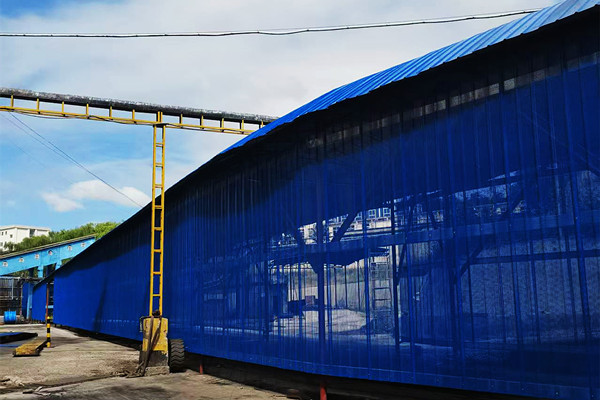 該通道設(shè)計全長120米,寬6米,拱頂距地面高6.7米,采用鋼結(jié)構(gòu)支撐體系與抑塵網(wǎng)組成,形成連續(xù)的覆蓋表面,能夠有效抑制貨運車輛運輸揚塵,有效降低儲運區(qū)域空氣顆粒物指標(biāo)濃度,并阻隔降低運輸噪聲污染。