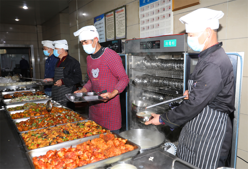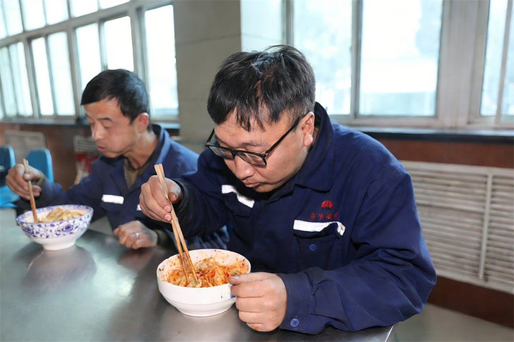“零點班”的職工陸續(xù)走進餐廳,一碗碗剛出鍋的水餃端上餐桌。四大機械巡檢電工馬小明夾起一個韭菜雞蛋餡餃子,咬下一口后連連稱贊“這餃子和家里包的一樣香,皮薄餡大,吃完渾身都暖和了” 年輕的小李則選了“冬至套餐”蒸碗、雞腿、拌蓮菜,再搭配蛋花湯,讓他稱贊“營養(yǎng)又美味”。