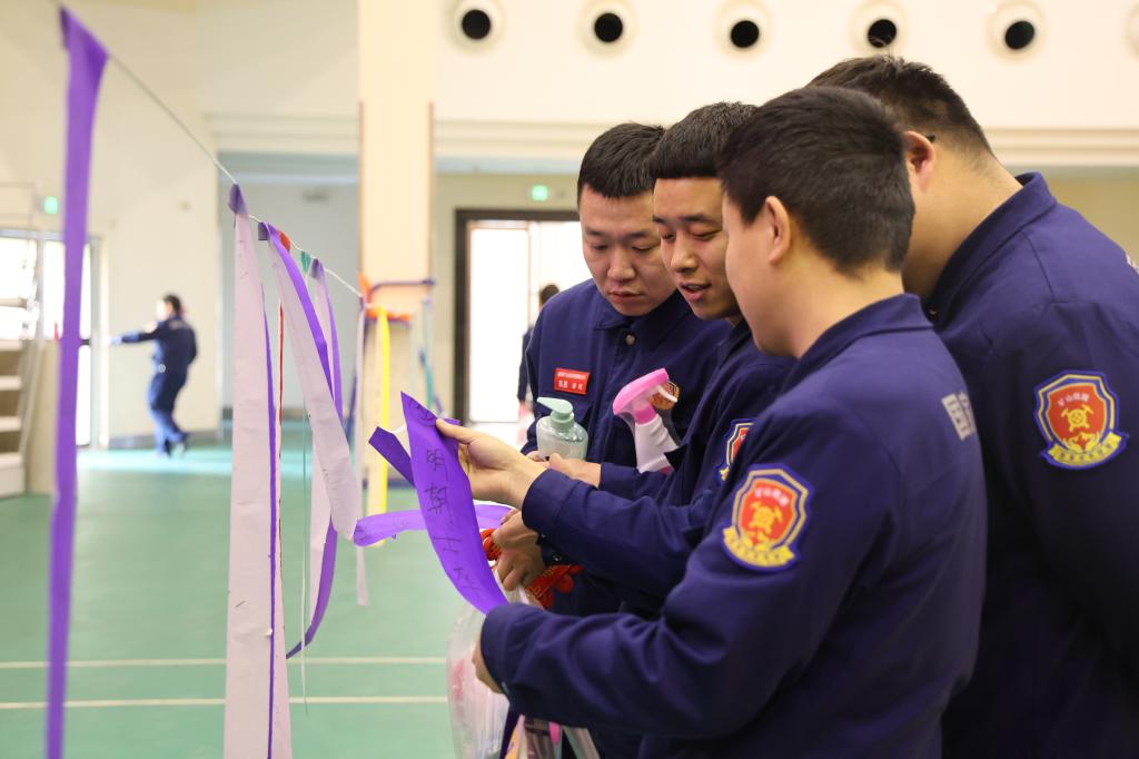 “‘應(yīng)急救援人員和被困人員發(fā)出救援聯(lián)絡(luò)信號敲擊五聲表示什么’,答案肯定是‘尋求聯(lián)絡(luò)’” 清脆的搶答聲劃破營區(qū)寧靜。3月3日,救護(hù)大隊(duì)營區(qū)內(nèi),紅燈籠高掛,彩謎條翻飛,剛結(jié)束體能訓(xùn)練的救護(hù)隊(duì)員攥著謎條,興奮地和隊(duì)友們討論著。