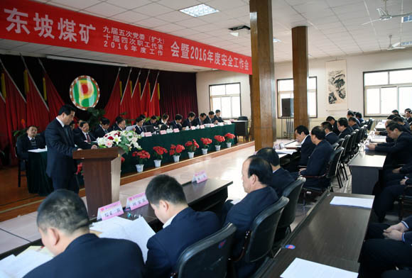 2月4日,東坡礦召開九屆五次黨委(擴(kuò)大)會、十屆四次職代會、2016年度工作會暨2016年度安全工作會。會議的主要任務(wù)是認(rèn)真貫徹落實(shí)公司“三會”精神,回顧總結(jié)2015年工作,分析當(dāng)前面臨的困難和形勢,安排部署2016年各項(xiàng)工作任務(wù)。該礦副總以上領(lǐng)導(dǎo)、職工代表、機(jī)關(guān)科室負(fù)責(zé)人、基層單位領(lǐng)導(dǎo)及列席代表共100余人參加了會議。