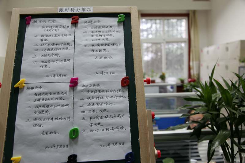 據(jù)悉,為進一步規(guī)范工作程序,提高工作效率,改進工作作風,增強服務(wù)意識,該礦規(guī)劃科針對部門自身限時待辦事項較多,以前科室內(nèi)部采取口頭形式安排工作,時間概念模糊,隨意性大,工作質(zhì)量不高,時效性不強,難免會在“日理萬機”中遺漏某些待辦事項的實際情況。積極按照礦《機關(guān)部門服務(wù)承諾制、首問負責制和限時辦結(jié)制度》要求,創(chuàng)新推行限時待辦事項上墻公示制,即每周一定期收集科室所有待辦事項,分門別類劃分責任人并標示處理時限,張貼在辦公室醒目位置,以提醒事項責任人及時辦理待辦事項,確保每項工作都不遺漏。