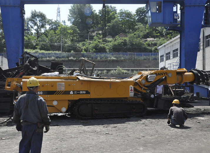 為進一步提升2405高抽巷推進進度,有效緩解礦井采掘接續(xù)緊張局面,在礦黨政領(lǐng)導周密組織協(xié)調(diào)下,一臺EBZ-160型綜掘機完成地面組裝調(diào)試后,即將投入2405(3#)高抽巷掘進生產(chǎn)使用。6月10日至11日,在分管機電礦級領(lǐng)導的現(xiàn)場指揮下,動力、生產(chǎn)等科室與掘四隊、機電車間組織技術(shù)人員,頂烈日揮汗如雨的進行著綜掘機地面組裝工作。經(jīng)過30多個小時的奮戰(zhàn),11日早10時,綜掘機完成初步組裝,經(jīng)過檢查確認安全后,隨著一聲試運行的令下,截割頭與鏟板星輪、刮板輸送機實現(xiàn)順暢運轉(zhuǎn)。隨后,按照試運行步驟,綜掘機在場地內(nèi)行走自如,順利完成了試運行各項檢測工作。