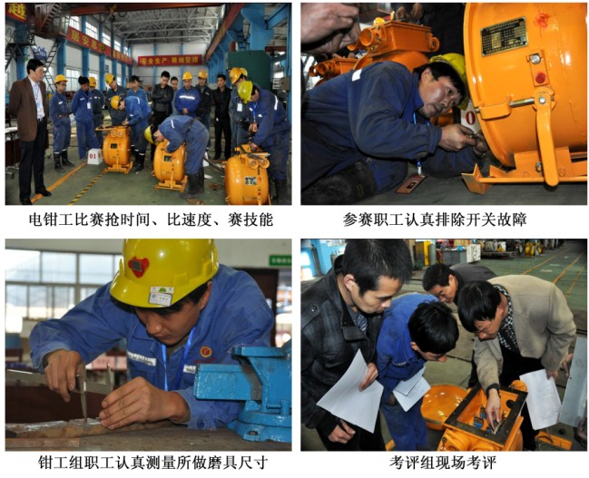 在比賽現(xiàn)場,24名電鉗工圍繞QBZ-120N開關接my-6603*50+1*16橡套電纜、排除由開關修理組提前設置好的開關故障、根據(jù)大賽組提供模具和鍵坯手制適合于磨具的鍵等內容展開了激烈“角逐”,搶時間、比速度、賽技能。比賽時間限時40分鐘,以用時最短的選手為標準,每延長一分鐘扣0.5分,滿分50分。比賽科目完成后,考評組對每一名選手的作業(yè)質量做出了點評,現(xiàn)場指點需要改進的地方和需要注意的操作細節(jié),并進行了逐項打分。