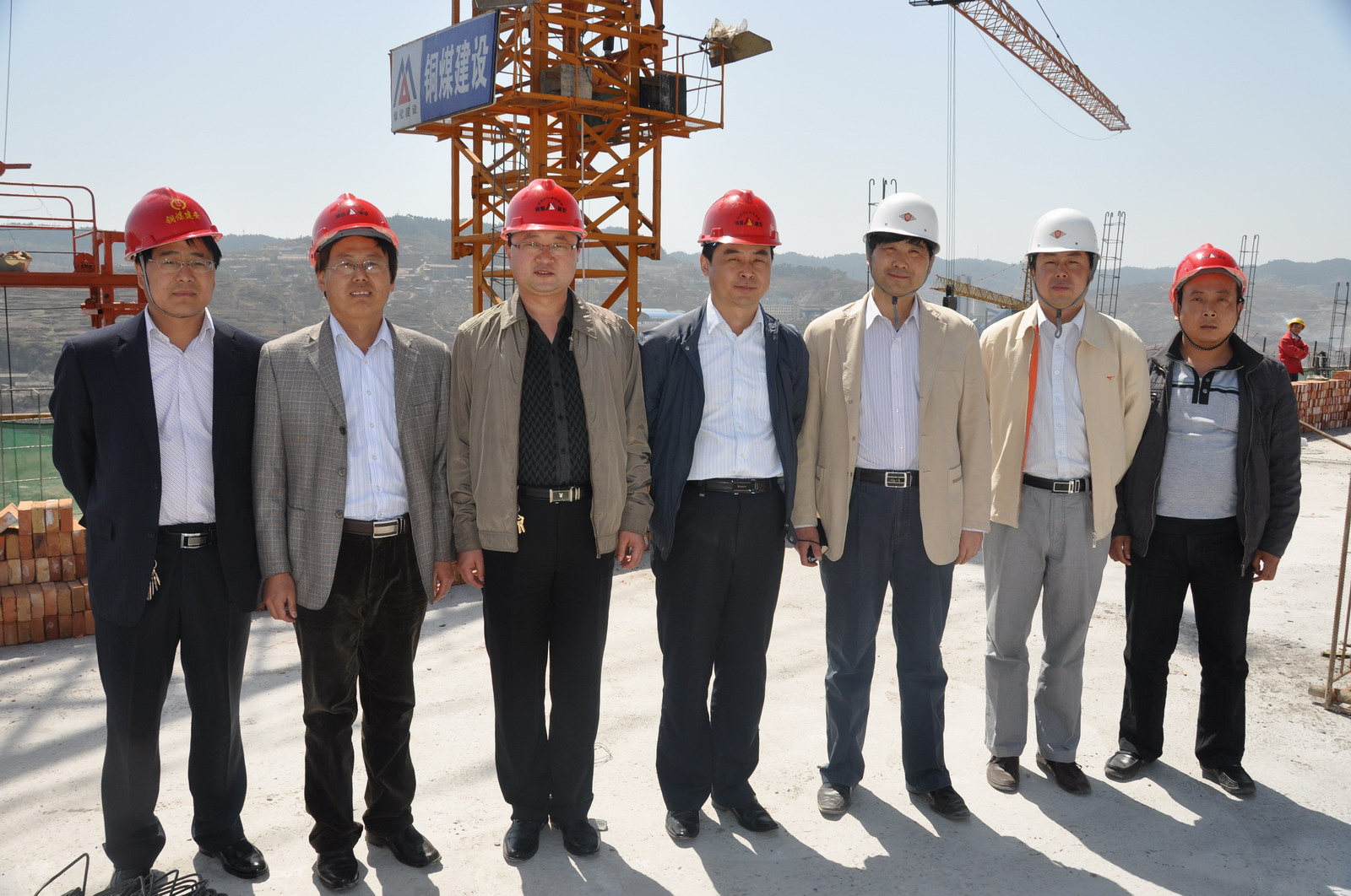 圖為1玉華礦黨委負責(zé)人唐建軍(中)、副礦長雷鐵山(左三)以及銅煤建設(shè)公司領(lǐng)導(dǎo)在1號公寓樓樓頂參加封頂合影。