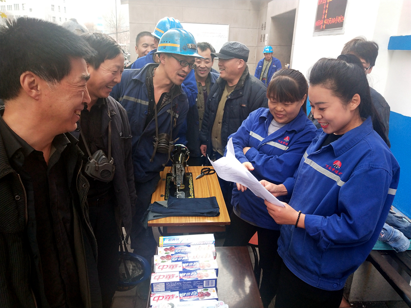 活動(dòng)現(xiàn)場(chǎng),女工家屬不畏嚴(yán)寒,積極為工友們?cè)诂F(xiàn)場(chǎng)縫補(bǔ)作衣,用她們熱情的服務(wù)溫暖著每一位在場(chǎng)職工的心田。同時(shí),她們還為上下井職工送上了手套、鞋墊、雞蛋和親情祝???,并深情地囑咐工友們?cè)诠ぷ髦幸獣r(shí)刻牢記安全,按章作業(yè),提高自保、互保、聯(lián)保意識(shí),認(rèn)真工作,敬業(yè)奉獻(xiàn),堅(jiān)決做到不傷害自己、不傷害別人、不被別人傷害的“三不傷害”。為了加強(qiáng)安全知識(shí)宣傳教育,她們還在活動(dòng)現(xiàn)場(chǎng)舉辦了安全知識(shí)有獎(jiǎng)問(wèn)答活動(dòng),凡回答正確的,每人發(fā)放牙膏牙刷等獎(jiǎng)品一份,讓大家在輕松愉快的氛圍中了解安全生產(chǎn)基本常識(shí),提醒大家在安全生產(chǎn)工作中防微杜漸,從而達(dá)到良好的宣傳效果。