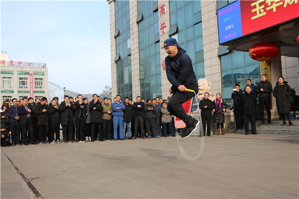 2月15日上午,玉華煤礦“慶新春系列活動”—職工跳繩比賽在礦機關樓前拉開帷幕。50余名干部職工參加比賽, 賽場一展“繩技”。該礦黨政領導與干部職工一同觀看了比賽。