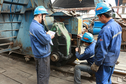 為方便提升裝卸物料,該礦建礦初始時(shí)在設(shè)備堆放場(chǎng)安裝了一臺(tái)大型龍門吊,經(jīng)過(guò)風(fēng)吹雨淋頻繁使用十余年,部分部位結(jié)構(gòu)已銹蝕老化,時(shí)常發(fā)生無(wú)法工作的情況。在與生產(chǎn)廠家工作對(duì)接來(lái)人檢查后,發(fā)現(xiàn)位于該龍門吊左部的運(yùn)行減速機(jī)支撐平臺(tái)徹底銹蝕嚴(yán)重發(fā)生斷裂,已無(wú)法確保安全運(yùn)行,整體部件無(wú)法修復(fù),必須進(jìn)行更換才能正常使用。得到這一情況后,修理廠利用“創(chuàng)客空間”集思廣益,職工們紛紛建言獻(xiàn)策,修理車間抽調(diào)技術(shù)骨干實(shí)地觀察研究討論,拿出了技改方案,在保障支撐平臺(tái)基礎(chǔ)架構(gòu)維持原結(jié)構(gòu)不變的基礎(chǔ)上,三名技術(shù)骨干利用修理綜采設(shè)備剩余的20毫米邊角廢舊鋼板,鉆孔、切割、打磨成合適的形狀,然后在支撐平臺(tái)下方進(jìn)行組裝焊接。短短一天時(shí)間,原本“必死無(wú)疑”的設(shè)備就恢復(fù)了運(yùn)行。獲得了生產(chǎn)廠家對(duì)玉華煤礦技改創(chuàng)新能力的贊譽(yù)。經(jīng)過(guò)數(shù)天試運(yùn)行后,該設(shè)備未發(fā)生任何問(wèn)題,證明了該技改措施安全、可靠,切實(shí)降低了生產(chǎn)運(yùn)維成本,使技改創(chuàng)新的成果真正的轉(zhuǎn)化為企業(yè)發(fā)展的新動(dòng)能。