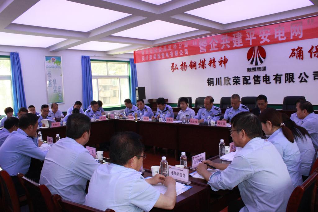 5月31日上午,銅川市公安局虹橋分局與欣榮配售電公司召開(kāi)“警企共建平安電網(wǎng)”座談會(huì),旨在加大警企合作力度,推動(dòng)共商共建“平安電網(wǎng)”工作有序開(kāi)展,為企業(yè)穩(wěn)定發(fā)展和確保礦區(qū)電網(wǎng)安全運(yùn)行提供有力的保障。銅川市公安局虹橋分局黨委書(shū)記、局長(zhǎng)侯小同、副局長(zhǎng)胡杰、李建華等領(lǐng)導(dǎo)和銅川市公安局警衛(wèi)處處長(zhǎng)劉有民、公司綜合部有關(guān)人員及欣榮公司有關(guān)領(lǐng)導(dǎo)、各變電站站長(zhǎng)共計(jì)40余人參加了會(huì)議。