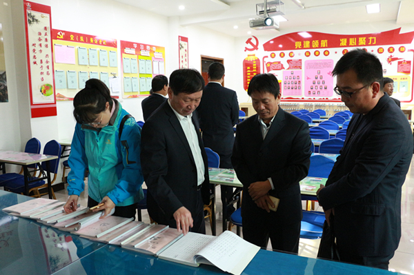 晁昕一行6人到礦后,在礦辦公廣場,聽取了講解人員對礦井黨建工作及企業(yè)文化建設(shè)工作的介紹,到采掘區(qū)隊學(xué)習(xí)室,對基層黨支部有關(guān)黨建工作特色亮點(diǎn)進(jìn)行了了解,查閱黨建質(zhì)量管理體系基礎(chǔ)資料,觀看“一區(qū)一品”品牌文化課件,全面了解礦井在“一黨委一特色、一支部一品牌”黨建工作思路下,堅持以點(diǎn)帶面,突出政治引領(lǐng),打造出“先鋒之隊”“鋼鐵之隊”“廉韻之隊”等具有鮮明特色的團(tuán)隊文化,以及“三學(xué)三做”“三抓三提”“六講六比”等特色品牌。在職工活動中心,觀看了礦井黨組織特色品牌創(chuàng)建管理體系流程圖,深入了解“黨委探路子把方向,部門出點(diǎn)子管大局,支部創(chuàng)牌子保落實(shí)”為支撐的三級聯(lián)動黨建創(chuàng)新理念和體系建設(shè)成果。隨后,對標(biāo)交流人員走進(jìn)業(yè)務(wù)對口科室,通過看、聽、問的互動交流方式,了解了黨員學(xué)習(xí)教育、干部管理考核的工作措施、流程等內(nèi)容,并就黨建工作創(chuàng)新的策劃、“黨建+”模式等進(jìn)行了交流。