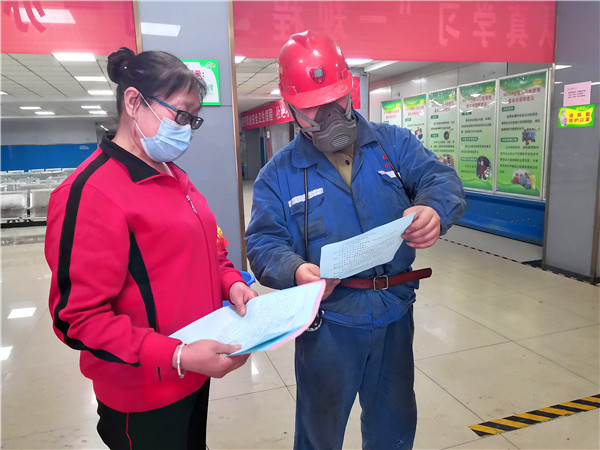 在系列宣傳活動中,該礦工會工作人員來到候罐大廳,為即將入井的干部職工發(fā)放了《塵肺病防治應(yīng)知應(yīng)會》《職業(yè)病防治》宣傳單,“娘家人”心系職工健康,詳細解答各項防治措施,宣傳做好職業(yè)病危害因素監(jiān)測與個人使用防護用品的重要意義,切實維護職工權(quán)益。