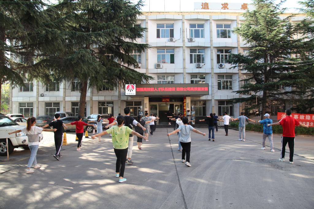 該公司機(jī)關(guān)四樓會(huì)議室熱鬧非凡,來自工會(huì)的陳夢之和辦公室的李穎耐心教導(dǎo),各位學(xué)員學(xué)的用心,在“教練”的指導(dǎo)下個(gè)個(gè)精神飽滿,跟著節(jié)拍展臂、轉(zhuǎn)身、踢腿、跳躍,舒展著身體,很快掌握了基本要領(lǐng),而且動(dòng)作規(guī)范。同時(shí),利用每天班前時(shí)間,各個(gè)部門(車間)都會(huì)組織職工進(jìn)行第九套廣播體操的訓(xùn)練,和著音樂節(jié)拍,列隊(duì)整齊,進(jìn)入了每天班前操時(shí)間,伴隨著每一個(gè)口令,認(rèn)真地練習(xí)每一個(gè)動(dòng)作,充分展現(xiàn)了公司干部職工積極向上、充滿活力的精神面貌。