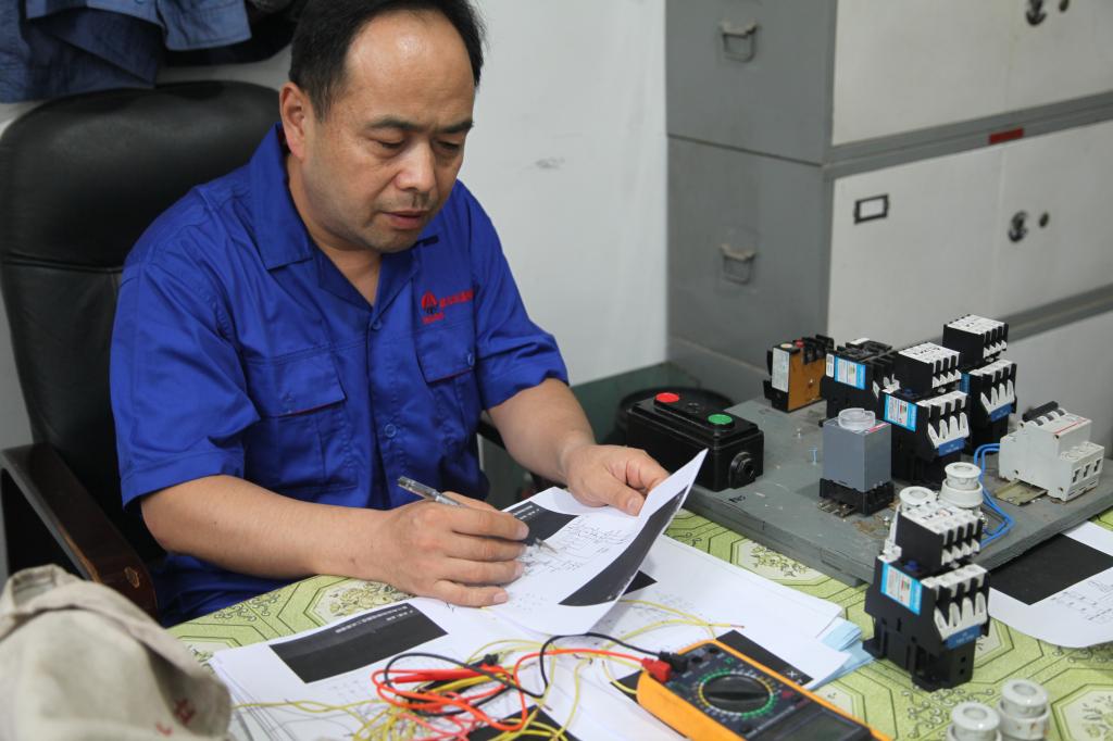 肖建峰干脆放下手中工具,張開雙臂扭了扭腰,讓緊張的情緒逐漸平復(fù)。再一次仔細(xì)看看圖紙,保證每一步精準(zhǔn)到位,一會(huì)斜口鉗、一會(huì)剝線鉗,最終配電盤接線準(zhǔn)確橫平豎直......