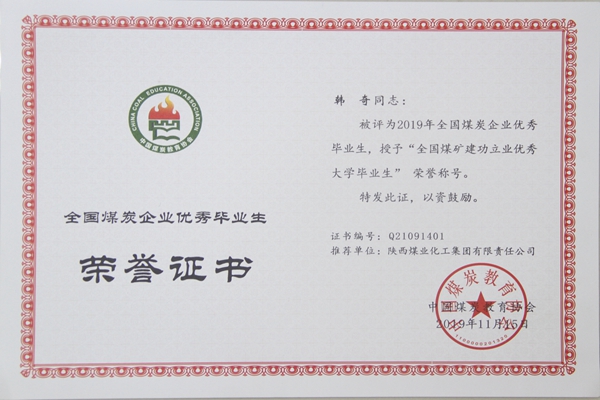 2014年7月,從河南理工大學(xué)采礦工程專業(yè)畢業(yè)的韓奇懷著青春夢(mèng)想,走進(jìn)了陳家山煤礦。面對(duì)當(dāng)時(shí)生活居住條件艱苦,技術(shù)人員困乏的陳家山煤礦,他沒有退縮,而是履行一名煤礦大學(xué)生、黨員干部的責(zé)任與擔(dān)當(dāng)。他堅(jiān)持“在工作中學(xué)習(xí)、學(xué)習(xí)中工作”,利用業(yè)余時(shí)間學(xué)習(xí)相關(guān)專業(yè)技術(shù),不斷充實(shí)自我,先后取得了國家注冊(cè)安全工程師、礦業(yè)工程二級(jí)建造師、建筑施工三類人員B證,煤炭建設(shè)工程初級(jí)造價(jià)員等職業(yè)資格證。在施工中勤于思考,積極總結(jié)施工經(jīng)驗(yàn),在《工程技術(shù)》上發(fā)表了《復(fù)雜條件下大斷面煤巷高強(qiáng)度復(fù)合支護(hù)優(yōu)化及應(yīng)用》、《軟巖巷道高強(qiáng)度復(fù)合支護(hù)優(yōu)化及應(yīng)用》等兩篇實(shí)用性論文,同時(shí)在《工業(yè)A》上發(fā)表了《陳家山煤礦419回順掘進(jìn)工作面水害防治經(jīng)驗(yàn)討論》一文。在他參加工作僅僅6年中,先后獨(dú)立完成了多個(gè)采掘工作面設(shè)計(jì)和技術(shù)創(chuàng)新科研項(xiàng)目,榮獲了多項(xiàng)榮譽(yù)稱號(hào)。