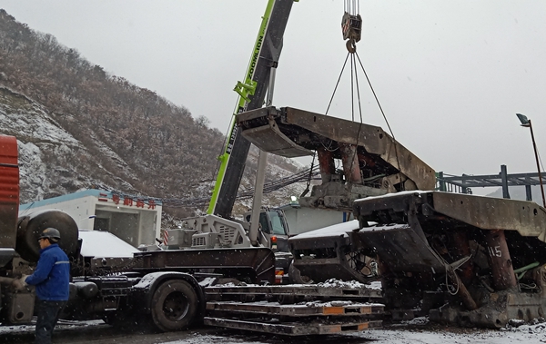 在該礦二號副斜井拉運現(xiàn)場,一個個佩戴著安全帽的忙碌身影穿梭在設(shè)備配件擺放區(qū)域,大型絞車、吊車聯(lián)合作業(yè),一派井然有序的繁忙景象。一臺臺近40噸的綜采支架和采煤機(jī)、刮板輸送機(jī)等設(shè)備從2305工作面途經(jīng)2305運順、2305進(jìn)斜、950軌道巷、副斜井井底車場一路運至二號副斜井工業(yè)廣場,在經(jīng)吊車、大型運輸車輛運回機(jī)廠。而采煤機(jī)、刮板輸送機(jī)、自移式機(jī)尾、設(shè)備列車、轉(zhuǎn)載機(jī)、泵站列車、皮帶機(jī)和電纜等設(shè)備材料沿2305運回順經(jīng)950軌道巷、副斜井井底車場、副斜井、平硐運往坑木場停放區(qū)進(jìn)行暫存。
