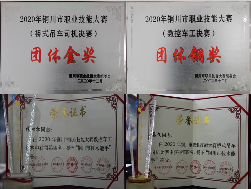 近日,從銅川市職業(yè)技能大賽總結(jié)會上傳來喜訊,由市委組織部、市人社局、市總工會、市科技局、團(tuán)市委聯(lián)合表彰了2020年銅川市職業(yè)技能大賽優(yōu)勝團(tuán)體和優(yōu)秀選手,作為銅川礦業(yè)公司委派參賽代表,欣盛煤機(jī)公司代表銅川礦業(yè)公司獲得了橋式吊車司機(jī)團(tuán)體金獎、數(shù)控車工團(tuán)體銅獎、姜文和張樹權(quán)兩位青年職工被授予“銅川市技術(shù)能手”稱號。