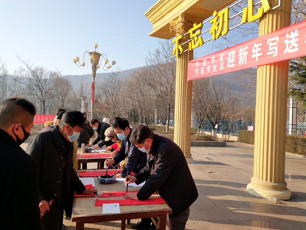 “萬戶桃符新氣象,群山霞彩富神州?!薄昂晚槤M門添百福,平安二字值千金?!睘榱藸I(yíng)造喜慶、祥和的新年氛圍, 2月9日至11日,下石節(jié)煤礦工會(huì)書法協(xié)會(huì)組織開展了寫春聯(lián)送祝福活動(dòng)。